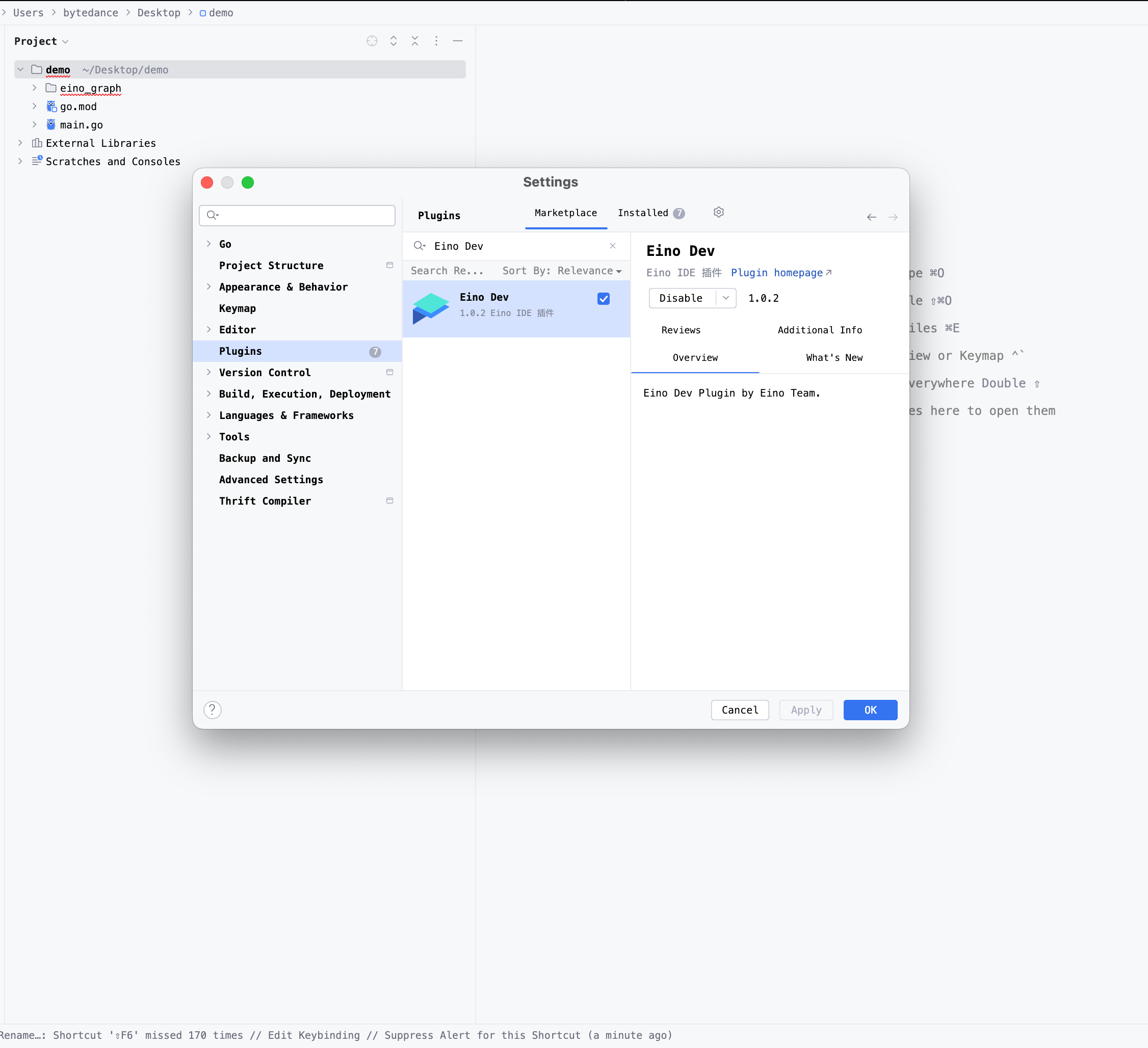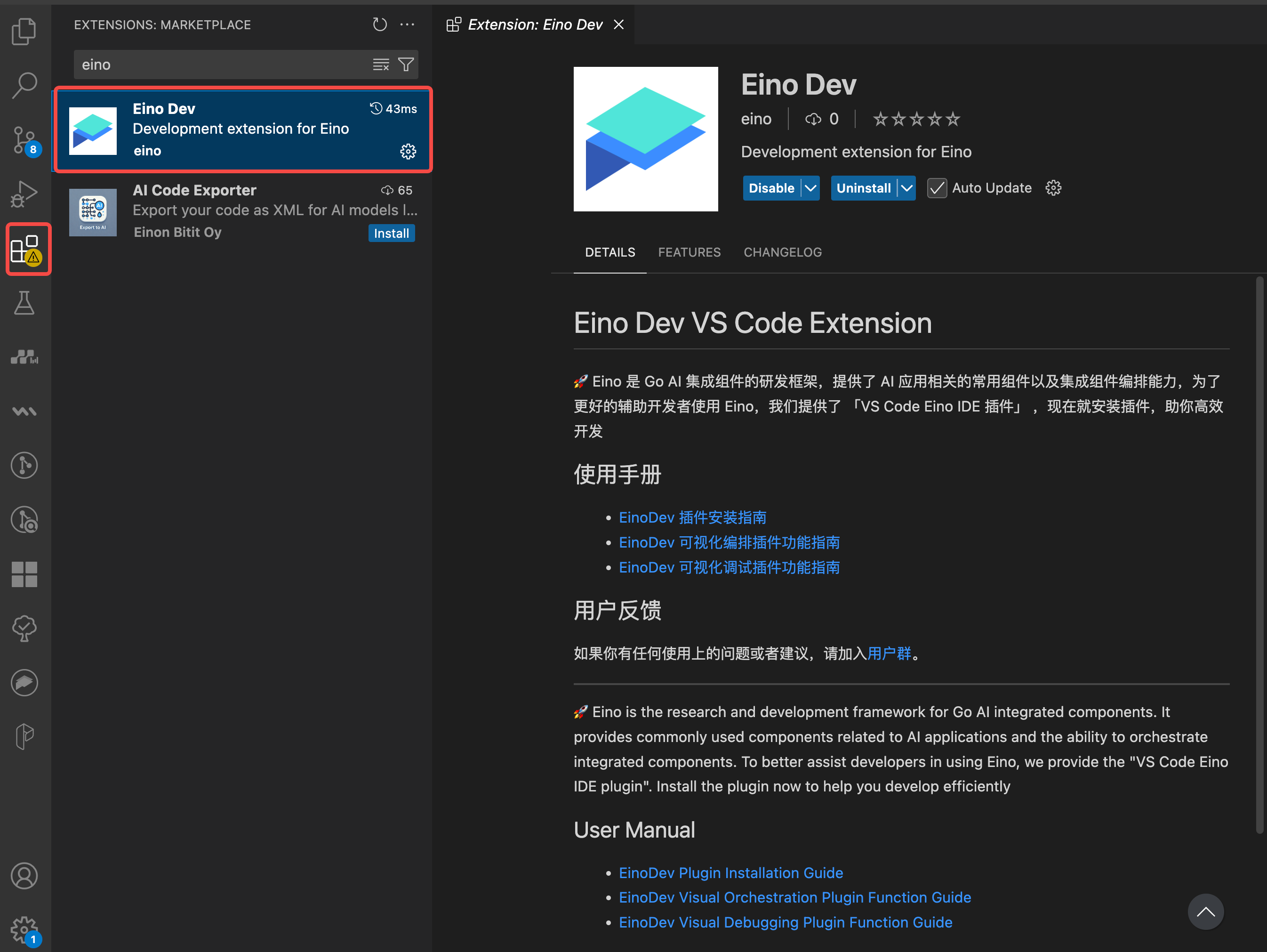 • eino-ext/devops Version: matching version of eino-ext/devops