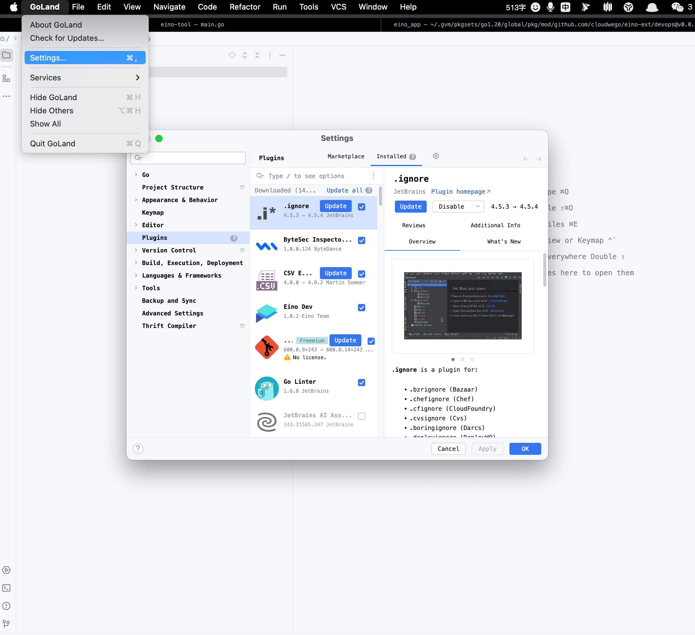 Plugin VersionGoLand IDE VersionVS Code Versioneino-ext/devops Version