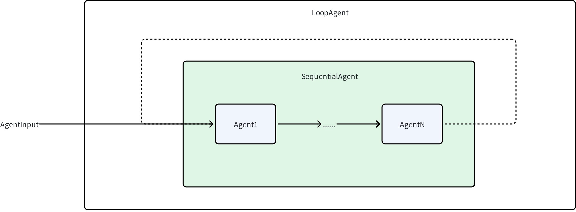 • Agent2: [SequentialAgent, LoopAgent, Agent1, Agent2]