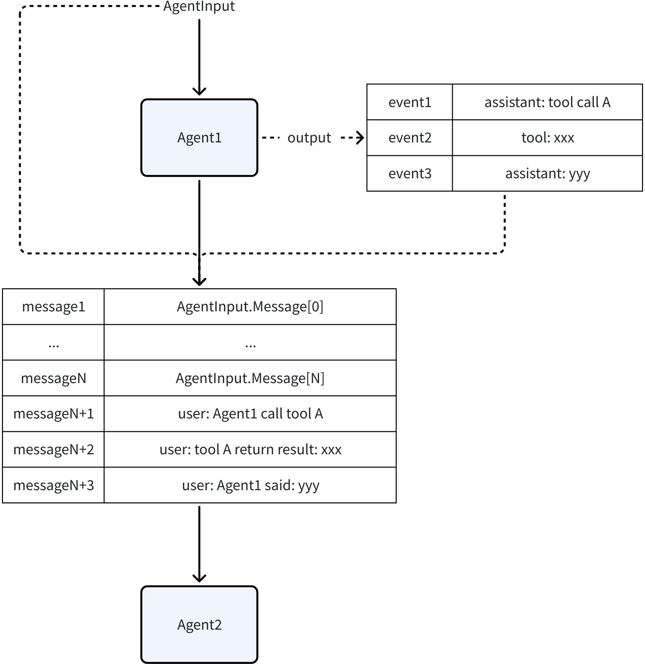 By default, Assistant or Tool Messages from other Agents are converted to User Messages. This is equivalent to telling the current LLM: “Just now, Agent_A called some_tool and returned some_result. Now it’s your turn to make a decision.”