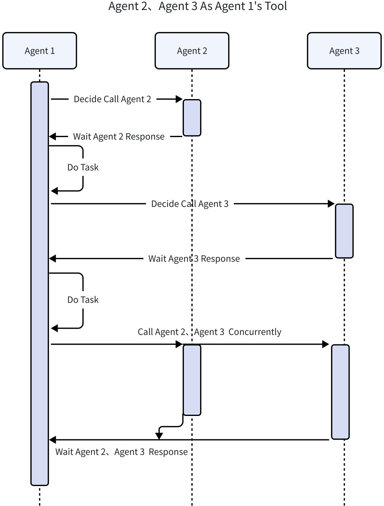 ToolCall (AgentAsTool)Invokes the Agent as a ToolCall, waits for the Agent's response, and can obtain the output result of the called Agent for the next round of processing